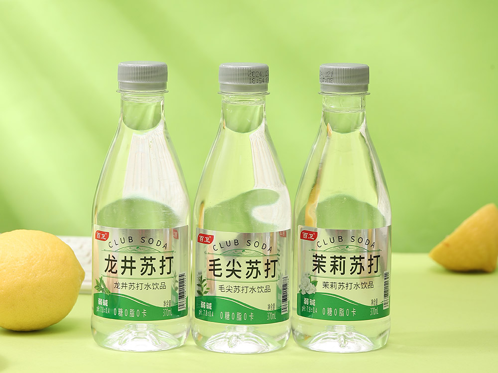 百衛茶蘇打有:茉莉蘇打、龍井蘇打、毛尖蘇打3個口味,百衛茶蘇打水回歸蘇打水的本質,以嚴謹的態度做好品控,云臺山水源,經多層滲透過濾,多道的檢驗程序,口感甘甜、細膩柔滑,飲用既解渴又好喝,完全符合各個年齡群體和追求健康飲品人群的市場定位。產品有370ml、520ml、900ml三個規格,充分滿足各種消費需求。